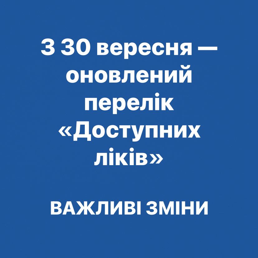 Зверніть увагу: з 30 вересня вступає в дію нова редакція програми «Доступні ліки».