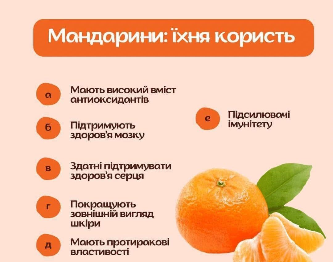 Отже, які ж переваги для нашого здоров’я мають мандарини: